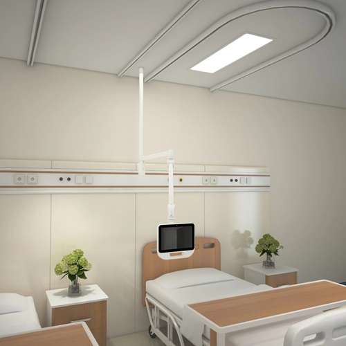 The Peacemounts HCM-01 hospital metal medical monitor tablet ceiling mount is designed to securely hold and position me